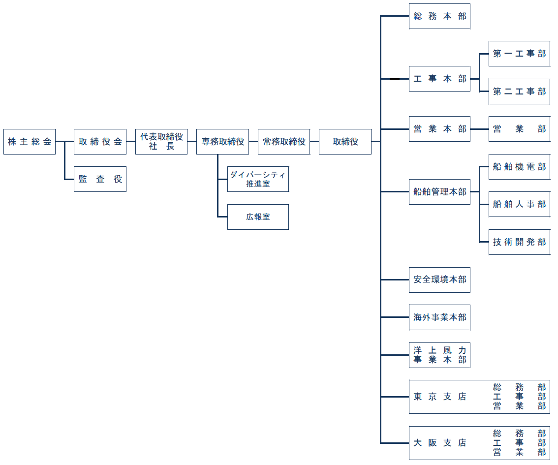 わが社の得意とする作業船の全自動運転システムの開発、デジタル化、バイオ燃料の使用、省エネ化、陸上電力供給システムの導入などを推進するとともに、監督員や船舶職員の増員による具体的且つ現実的な策により、着実に実現できるよう対応しております。