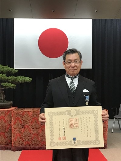 2019.05.31 令和元年 春の褒章「藍綬褒章」が授与されました 令和元年5月21日に発令された春の褒章において、天皇陛下より、弊社社長・小島徳明が「藍綬褒章」を授与されました。 藍綬褒章は日本国天皇が授与する6つの褒章のうちの一つであり、社会福祉や公衆の利益等に功績のあった者に与えられます。 このたびの弊社社長への授与は、「多年港湾建設業に携わり、業界の発展に寄与した」ことに対するものです。 5月30日に執り行われた藍綬褒章伝達式の様子を紹介します。