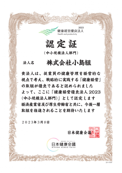 経済産業省が、健康増進の取組をもとに特に優良な健康経営を実践している法人を顕彰する制度「健康経営優良法人2023」において、昨年に引き続き当社が健康経営優良法人に認定されました。