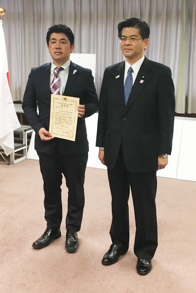 1月21日に行われた国土交通省「平成30年度 i-Construction大賞」において、当社が施工した「鹿島港外港地区中央防波堤付属施設築造工事」が優秀賞を受賞しました。 授与式には石井啓一国土交通大臣と塚田一郎国土交通副大臣が出席され、大臣より賞状が授与されました。