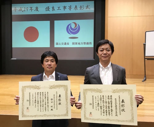 国土交通省関東地方整備局より優良工事及び優秀工事技術者表彰を受けました